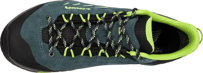 Das klassische Schnürsystem sichert den Wanderschuh fest um den Fuß, indem der Schnürsenkel durch verschiedene Umlenkelemente wie Ösen, D-Ringe, Schlaufen, Haken, Mini-Umleitrollen oder winzige Metalltunnel geführt wird. Diese Methode hat sich aufgrund ihrer einfachen Reparaturmöglichkeit – oft reicht der Austausch des Schnürsenkels – und ihrer Flexibilität bewährt. Der entscheidende Vorteil liegt in der variablen Schnürung je nach Anforderungsbedarf, die durch die Kombination verschiedener Umlenkelemente und Schnürtechniken unterstützt wird (z.B. Kreuz- oder Parallelschnürung, den Einsatz einer falschen Feststellöse oder die Flaschenzugtechnik). Diese Flexibilität ermöglicht es, bestimmte Fußbereiche je nach Situation gezielt zu unterstützen oder zu entlasten. So kann beispielsweise die Schnürung im Knöchelbereich beim Anstieg lockerer und beim Abstieg straffer gestaltet werden, um die Ferse effektiv zu stabilisieren.